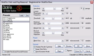 ClickFix uses a proprietary statistical technique to locate clicks and pops. It does not